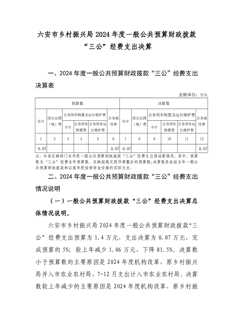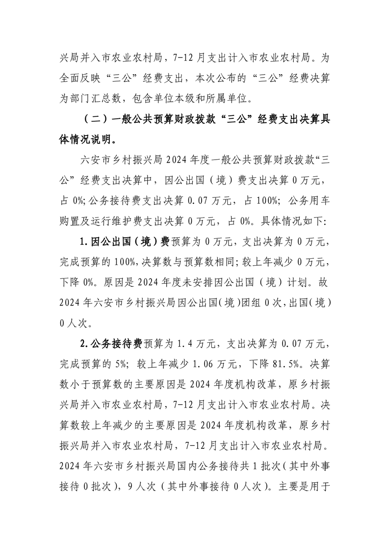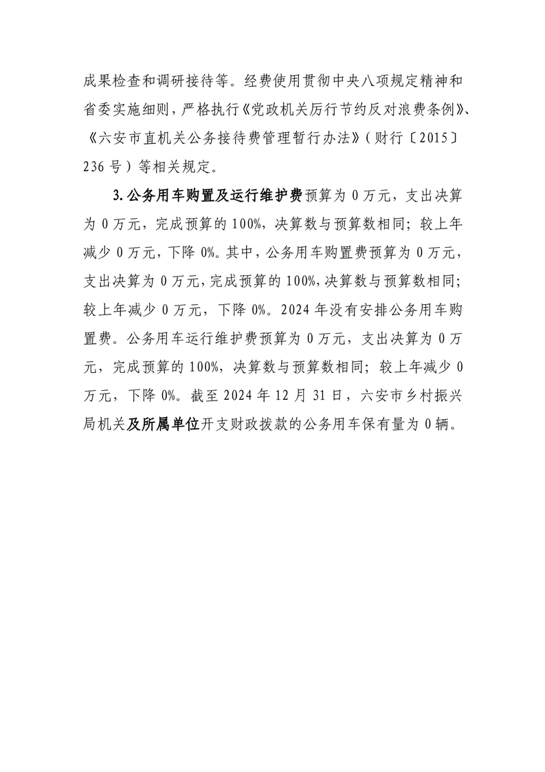六安市乡村振兴局2024年度一般公共预算财政拨款“三公”经费支出决算